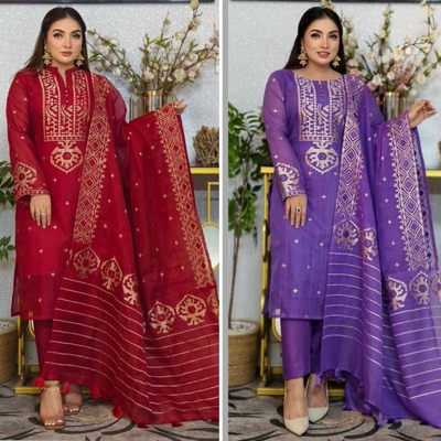 👗KAMIJ: fine quality slav cotton semi stitch kamij material with embroidered and cut worked.